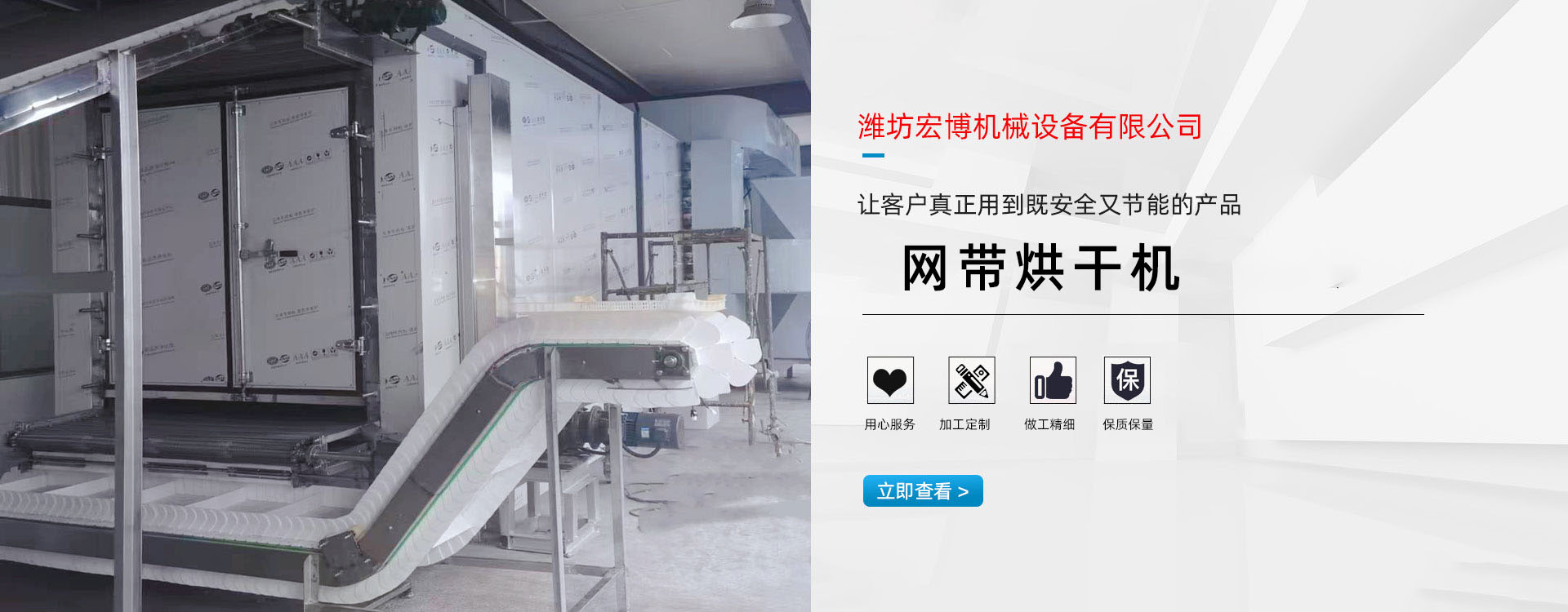 宏博公司主要產(chǎn)(chǎn)品有:網(wǎng)(wǎng)帶烘干機(jī)(jī)、食品烘干機(jī)(jī)、滾筒烘干機(jī)(jī)、隧道窯、烘干箱、燃?xì)鉄犸L(fēng)(fēng)爐、高大車(chē)間供暖設(shè)(shè)備、礦用防爆電加熱器等。